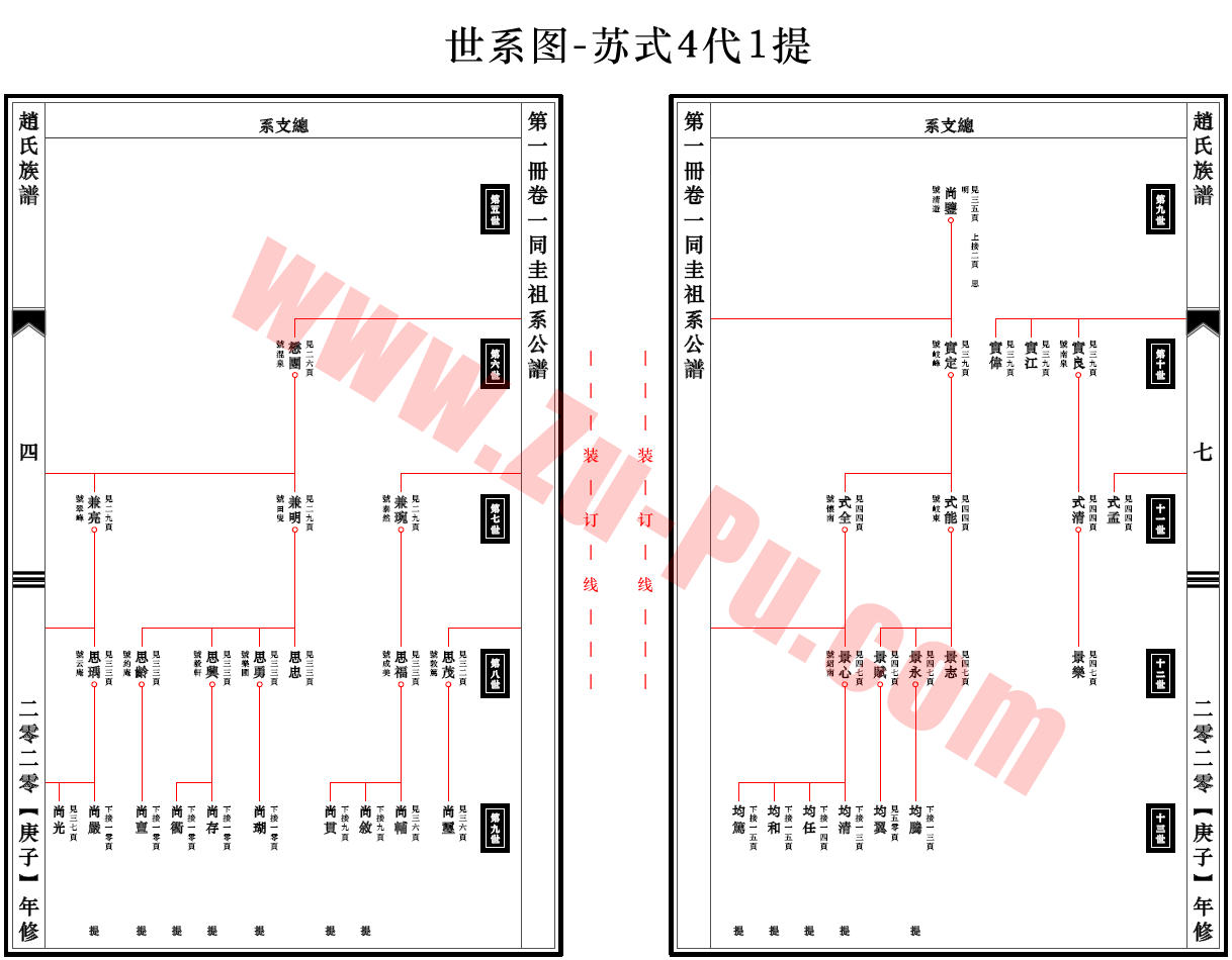 第三部分:世系图。世系图包括苏式5代式、苏式4代1提式、苏式5代1提式、苏式行传混编、新苏式9代式、现代标准式、现代简约式。